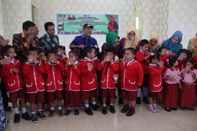 SANGKULIRANG – Gerakan minum susu (Gerimis) bagi siswa Pendidikan Anak Usia Dini (PAUD) kembali diluncurkan (launching) Pemerintah Kabupaten Kutai Timur (Kutim) melalui Tim Penggerak Pemberdayaan Kesejahteraan Keluarga (TP PKK) Kutim, bekerjasama dengan Dinas Pendidikan Kutim, Minggu (21/10/2018) di BPU Kecamatan Sangkulirang.