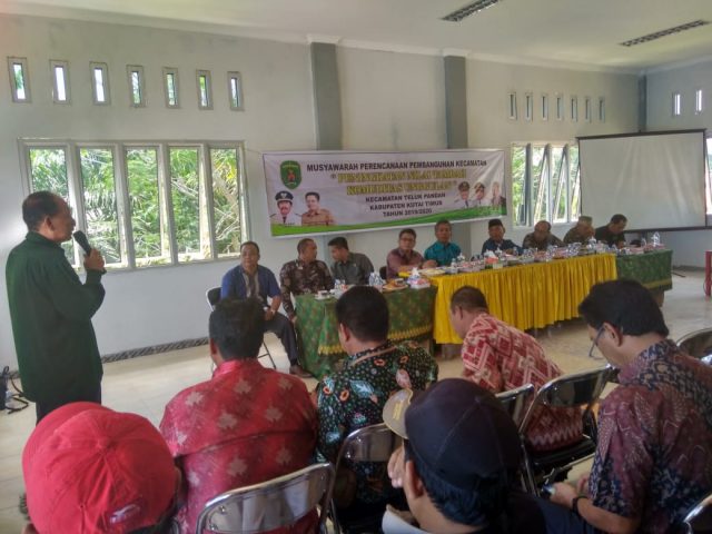 Kades Martadinata-Kecamatan Teluk Pandan Moeing Acil saat menyampaikan beberapa progress pembangunan saat Musrenbangcam Teluk Pandan. (Foto: Fuji Humas)