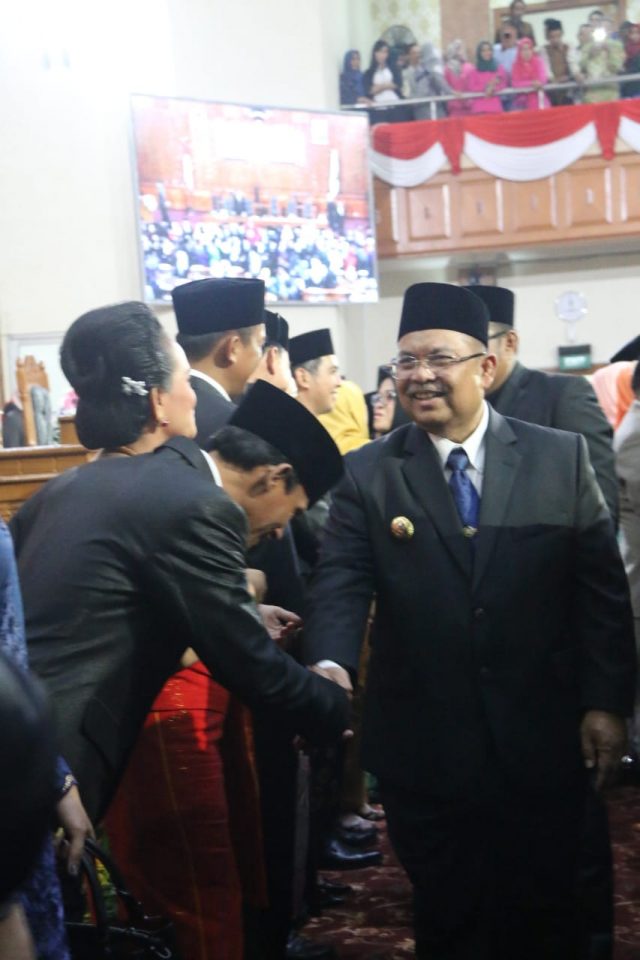 Bupati Ismunandar memberikan ucapan selamat kepada para anggota DPRD jabatan tahun 2019-2024 yang baru dilantik. (Foto: Desi Humas)