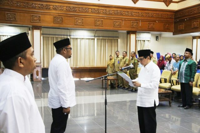 SANGATTA – Pemerintah Kabupaten Kutai Timur (Pemkab Kutim) bersinergi dengan Badan Wakaf Indonesia Kalimantan Timur (BWI Kaltim), gelar upacara Pelantikan Pengurus BWI Kutim Periode 2019-2024 diruang Meranti, Kantor Bupati Kutim, Selasa (13/8/2019).Pengambilan sumpah dalam pelantikan pengurus tersebut dipimpin langsung oleh Ketua BWI Kaltim, Dr KH Farid Wadjdy, M Pd.