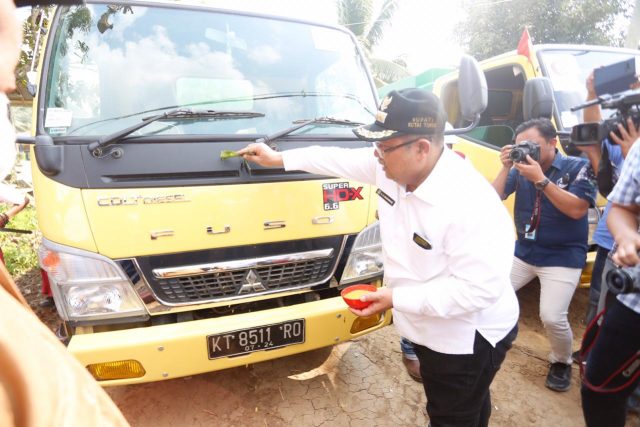 BENGALON – Sebanyak 6 unit kendaraan truk tangki dari anggaran Pendapatan Asli Desa (PADes) Tepian Langsat diserahkan saat kunjungan kerja Bupati Ismunandar beserta jajarannya. Truk itu, difungsikan sebagai pengangkut CPO perusahaan kemudian dikelola oleh masyarakat desa. Agar kedepannya masyarakat desa menjadi mandiri dan dapat bekerja sama dengan perusahaan sawit disekitar wilayah Bengalon utamanya di Desa Tepian Langsat.