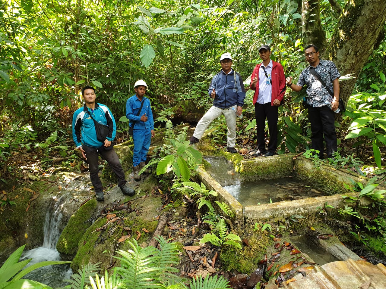 KROSCEK: Direktur PDAM Kutim Suparjan bersama rombongan saat meninjau lokasi mata air di lereng Gunung Sekerat yang akan dijadikan sumber baku air bersih. (Foto: ist)