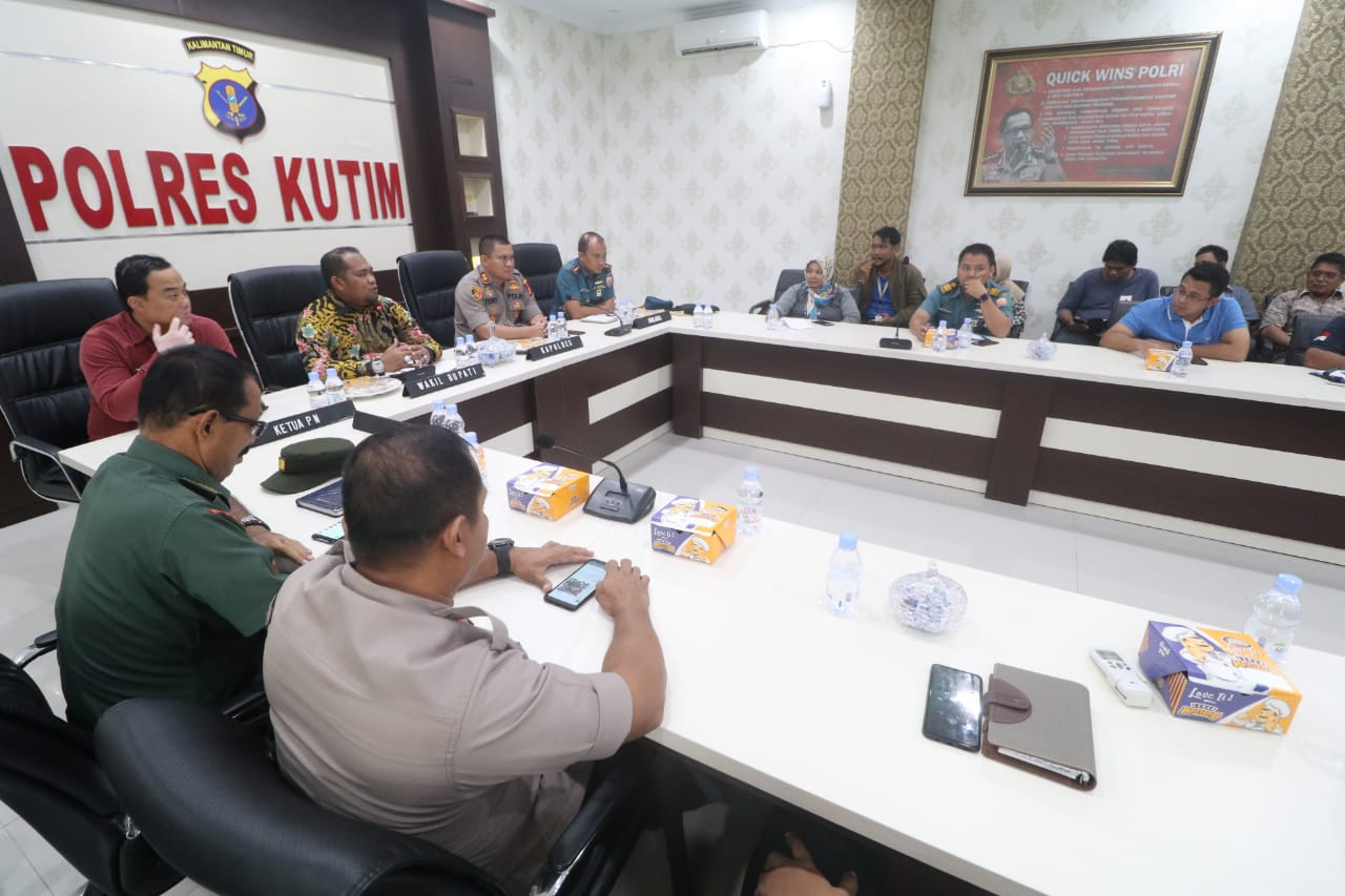 Rapat koordinasi terkait kelangkaan BBM dipimpin Wakil Bupati H Kasmidi Bulang didampingi Kapolres Kutim AKBP Teddy Ristiawan, Danlanal Sangatta Letkol Laut (P) Osben Alibos Naibaho, Ketua Pengadilan Negeri Sangatta Rahmat Sanjaya di ruang pertemuan Polres Kutim.(Foto: Jani Humas)