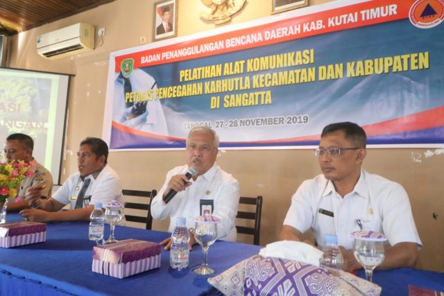 SANGATTA – Untuk mempermudah dan mempercepat komunikasi terkait bencana, Badan Penanggulangan Bencana Daerah (BPBD) Kabupaten Kutai Timur (Kutim) menggelar pelatihan alat komunikasi petugas pencegahan Karhutla Kecamatan dan Kabupaten. Dibuka resmi Sekretaris Kabupaten H Irawansyah, di MS Hotel, Rabu (27/11/2019).