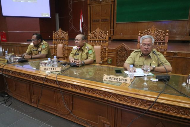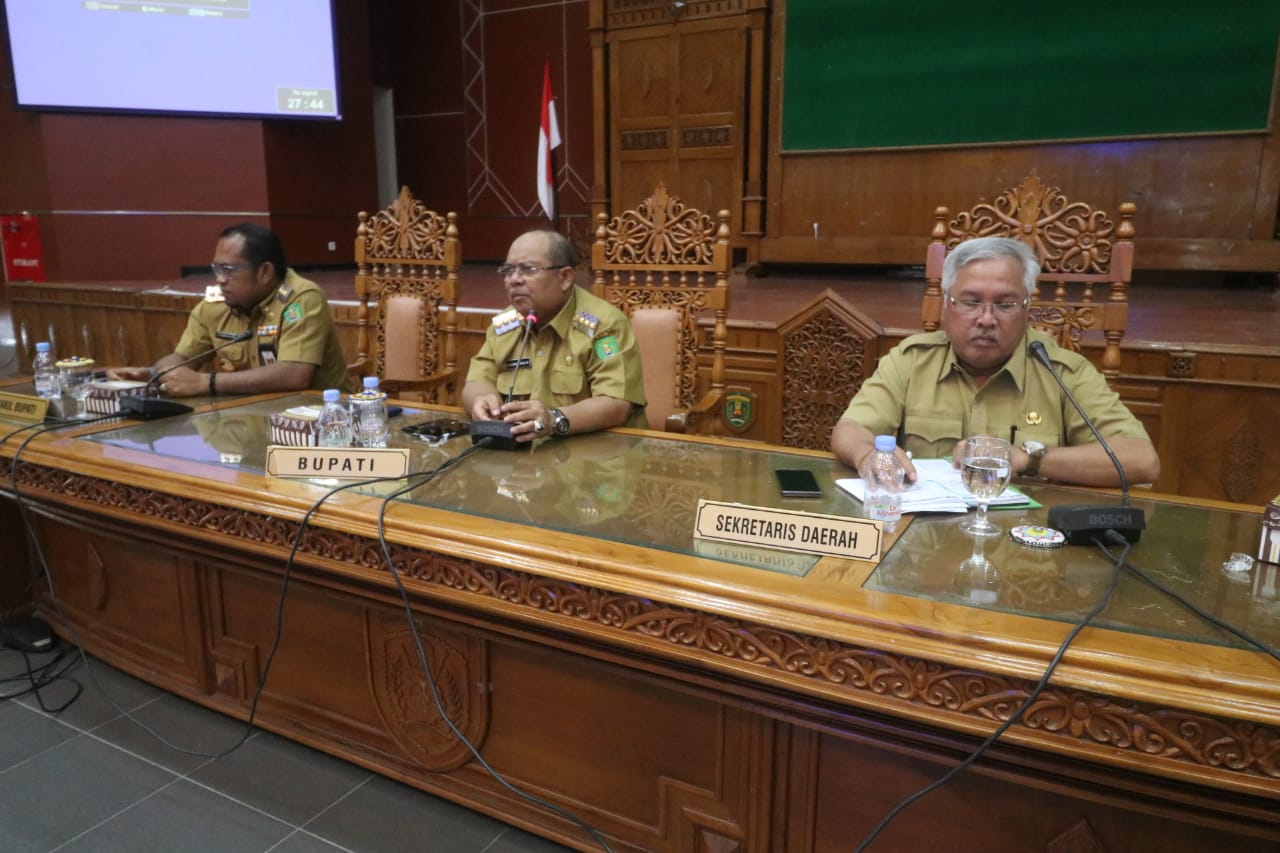 Bupati Ismunadar memimpin rapat koordinasi didampingi Wakil Bupati Kasmidi Bulang dan Sekretaris Kabupaten Irawansyah.(Foto: Jani Humas)