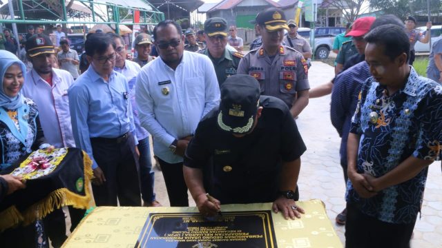 Bupati Kutim H Ismunandar saat penandatangan prasasti Gedung UP2K Kecamatan Rantau Pulung (Wak Hedir Pro Kutim)