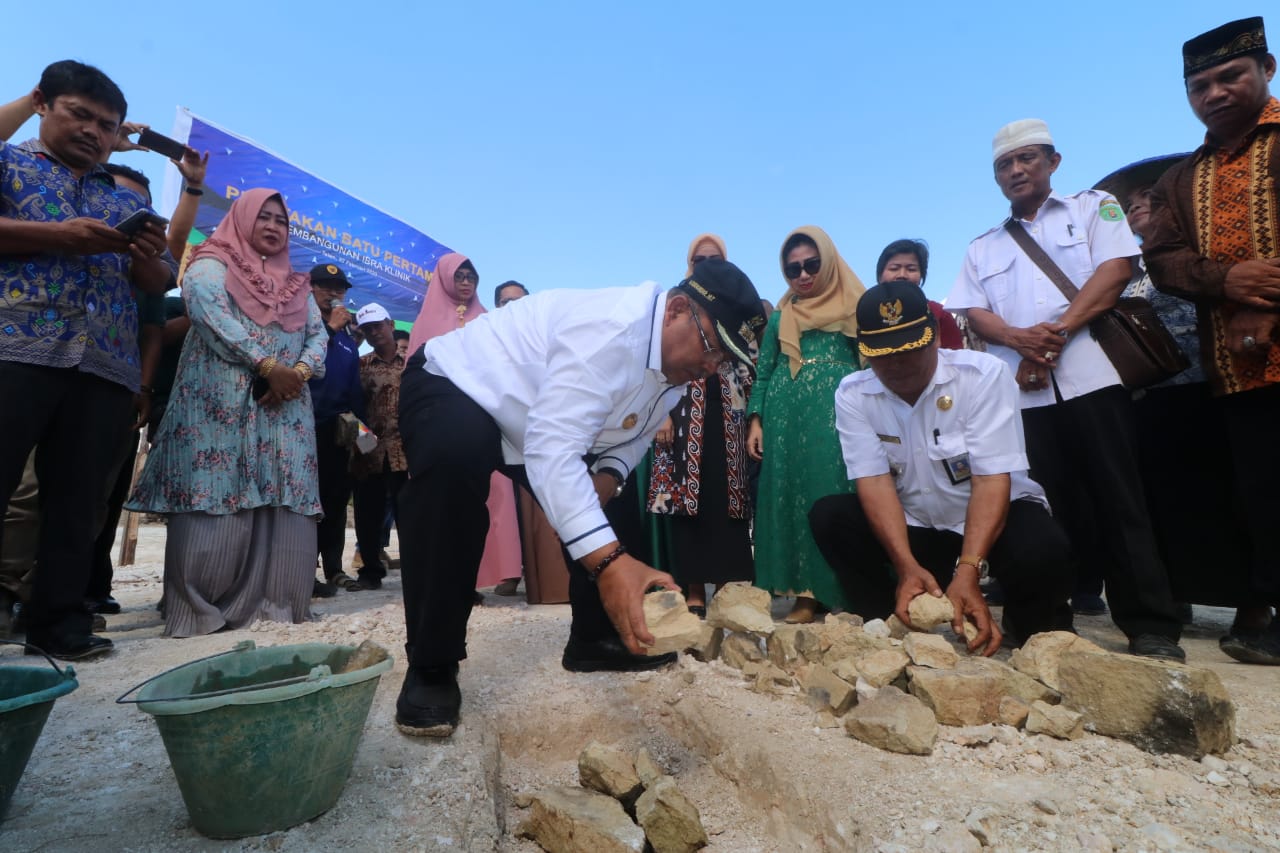 Bupati Ismunandar saat melakukan peletakan batu pertama pembangunan Poli Klinik Ibra Atharrizqy Yusmara di Desa Marah Haloq (Foto: Jani Pro Kutim)