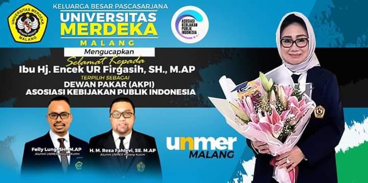 “Sekali lagi, kami yang sama-sama Alumni Unmer Malang mengucapkan selamat kepada Bunda Hj Encek UR Firgasih SH MAP yang terpilih menjadi salah satu dewan pakar AKPI,” ujar Felly. (*/hms2/hms3)