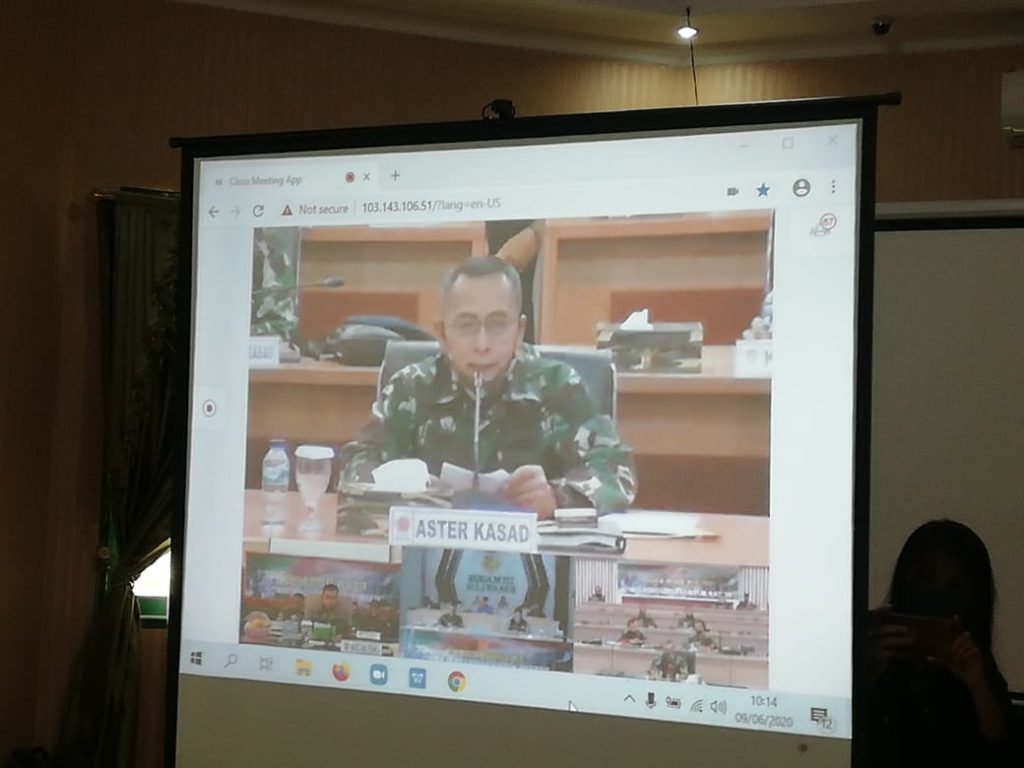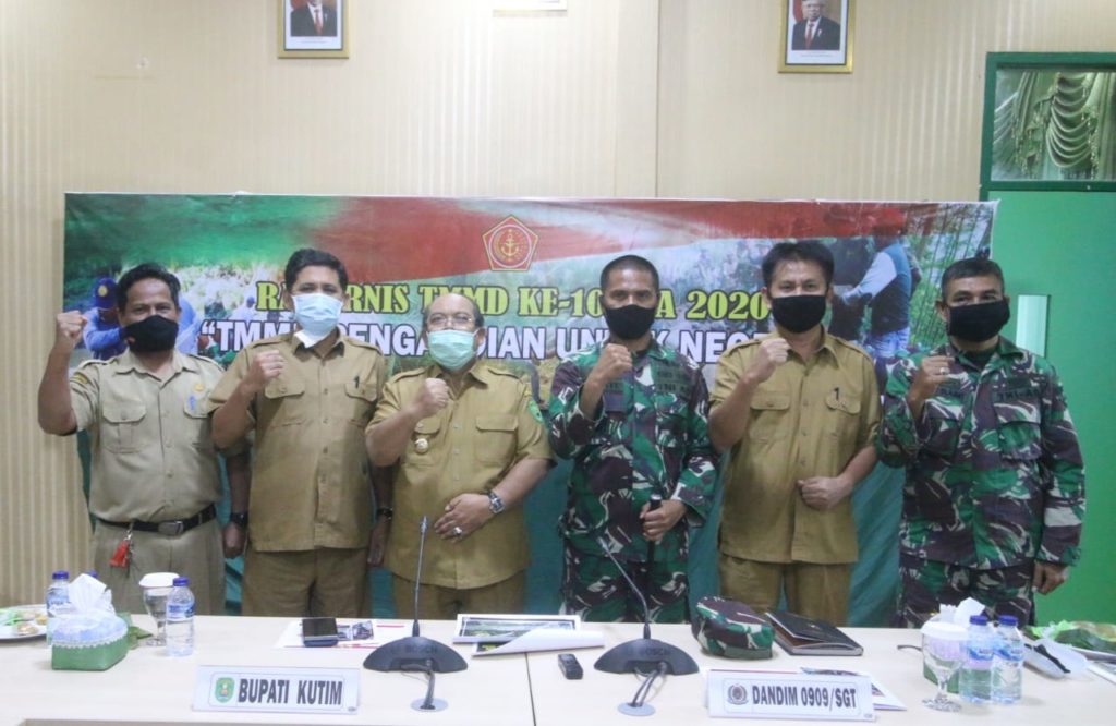 Bupati Kutai Timur H Ismunandar didamping Dandim 0909/Sangatta Letkol Czi Pabate mengikuti Rakornis itu mengambil tema “TMMD Pengabdian Untuk Negeri”, Selasa (9/6/2020). (Wahyu Pro Kutim)