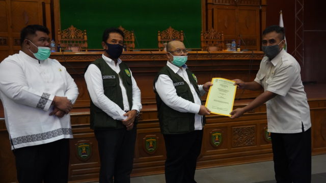 SANGATTA – Sebanyak 39 Aparatur Sipil Negara (ASN) dilingkup Sekretariat Kabupaten Kutai Timur (Setkab Kutim) naik pangkat dan golongan periode April 2020. Surat Keputusan (SK) kenaikan pangkat diserahkan langsung oleh Bupati Kutim H Ismunandar di ruang Meranti, Kantor Bupati Kutim, Rabu (24/6/2020).