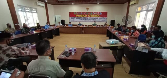 Ketua Gugus Tugas Percepatan Penanganan COVID-19 Kabupaten Kutim H Ismunandar (Bupati Kutim) saat memimpin Rapat Evaluasi, di Posko Utama (Kantor BPBD) Jl Soekarno-Hatta (Wak Hedir Pro Kutim)