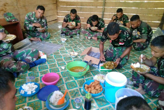 KALIORANG – Kegiatan TMMD 108 di Kutim secara tidak langsung menjadi wahana bina keakraban para pihak yang terlibat. Dan SSK TMMD 108 Kodim 0909/Sangatta sekaligus Danramil 0909-06/Bengalon Kapten Inf Sajani Lumbantoruan menyampaikan, momen keakraban terlihat jelas disemua kegiatan TMMD, termasuk makan bersama.