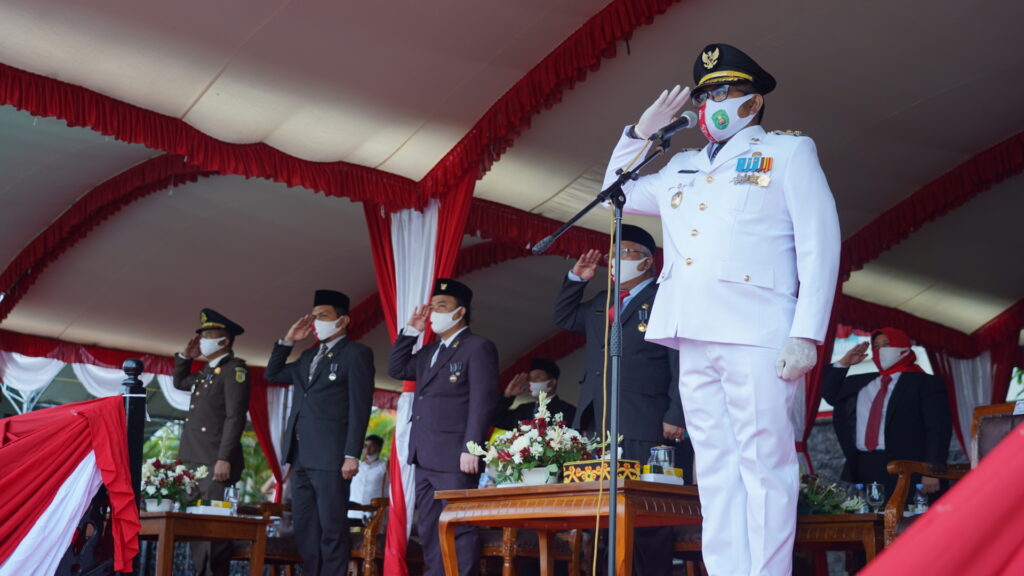 SANGATTA – Sekitar pukul 17:30 WITA sore tadi, Halaman Kantor Bupati, di Bukit Pelangi kembali dilaksakan upacara masih dalam rangkaian peringatan HUT ke 75 RI. Yaitu penurunan Bendera Merah Putih. Upacara penurunan bendera yang digelar dimasa pandemi COVID-19 ini berlangsung lancar dan sukses.