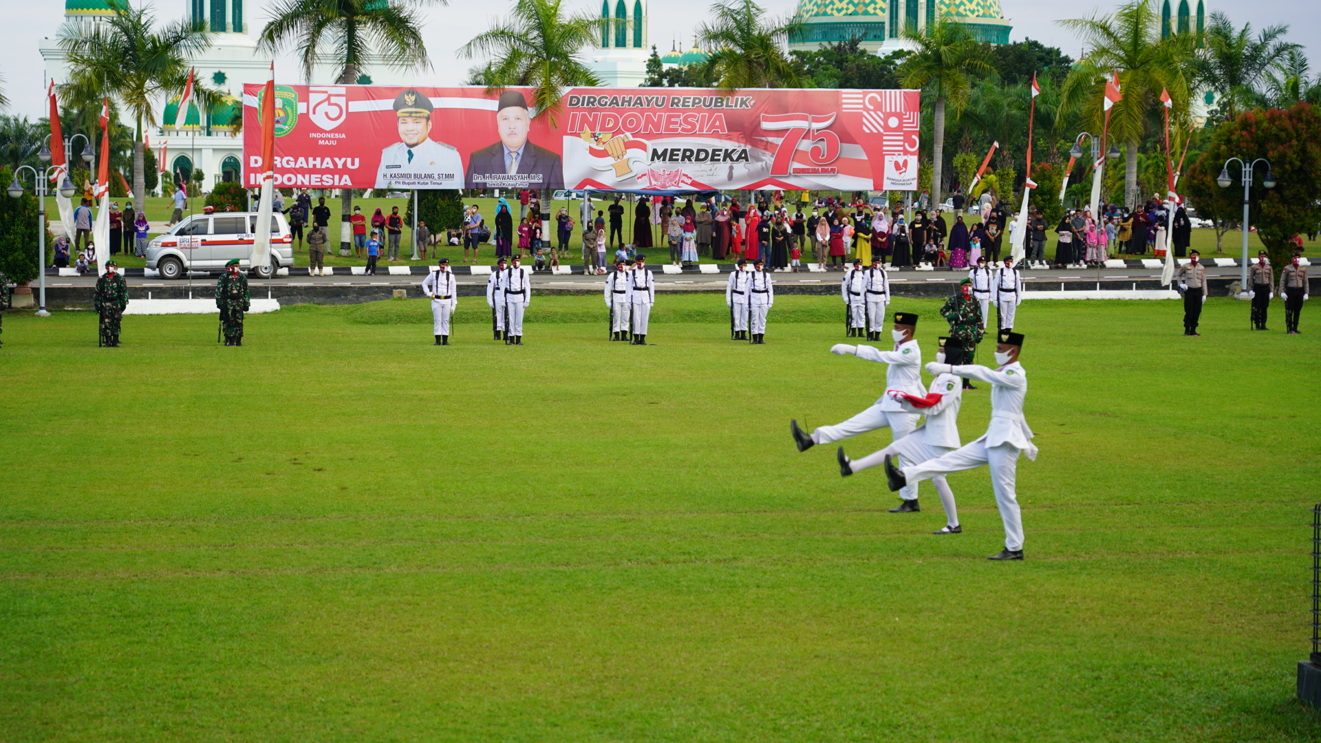 Suasana penurunan bendera merah putih di Kutim. (Wahyu Pro Kutim)