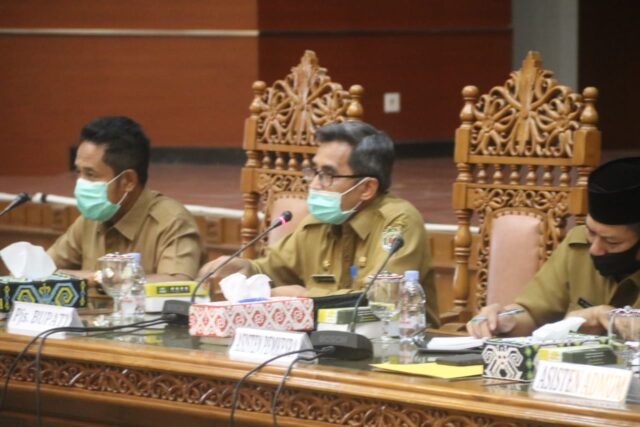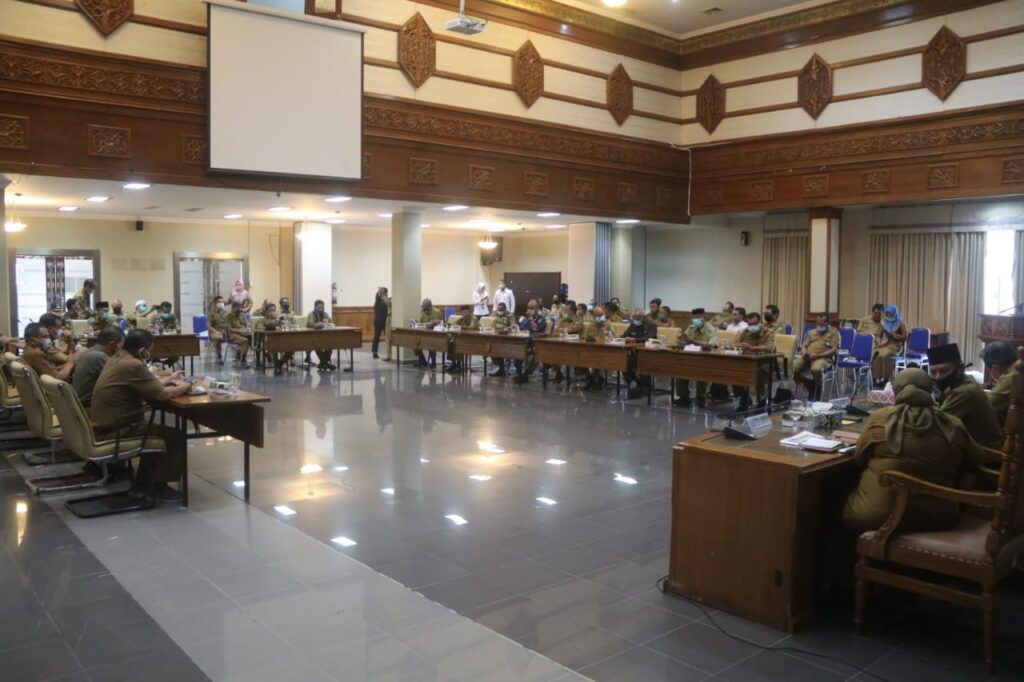 SANGATTA – Hari pertama kerja sebagai Pjs Bupati Kabupaten Kutai Timur (Kutim) Muhammad Jauhar Effendi, silahturahmi dengan jajaran Pejabat di Lingkungan Pemkab Kutim. Mulai dari para asisten, Kepala Dinas, Kepala Bagian hingga para Camat se-Kutim, diruang Meranti, Kantor Bupati, Senin (28/9/2020).