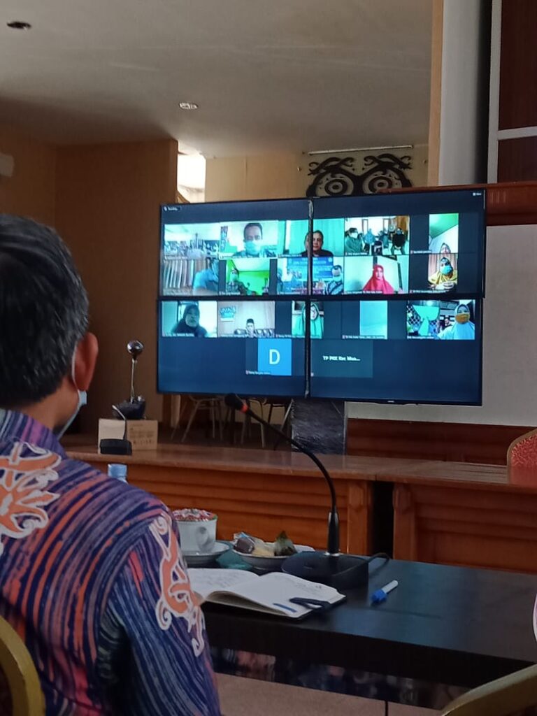 SANGATTA – Pjs Bupati Kutai Timur (Kutim) Moh Jauhar Efendi dan Pjs Ketua TP PKK Kabupaten Kutim Ny Rina Marlina Jauhar bersilaturrahmi sekaligus melaksanakan rapat koordinasi (Rakor) dengan Pengurus TP PKK Kabupaten. Rakor yang juga diikuti Camat dan TP PKK Kecamatan se Kabupaten Kutim, itu berlangsung secara virtual (meeting zoom ) di Aula Bappeda, Jum’at (2/10/2020).