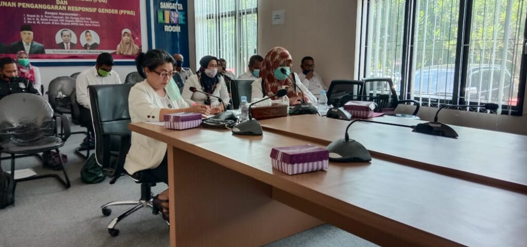 Momen Sosialisasi dan Advokasi Pengarutamaan Gender dan Penyusunan Penganggaran Responsif Gender (PPRG) diruang Media Center, Diskominfo dan Perstik Kutim, Rabu (14/10/2020).(Wak Hedir Pro Kutim)
