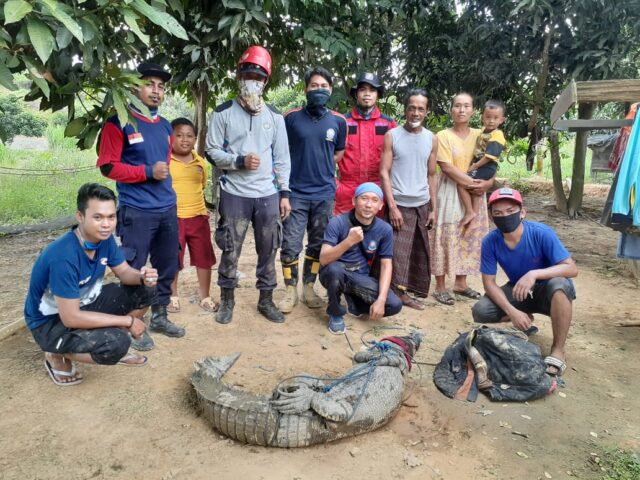 “Karena kondisi pada malam hari dan demi keselamatan anggota, kita putuskan untuk melakukan evakuasi pada Jum’at pagi (23/10/2020) pukul 10.20 WITA. Berkat kerja keras tim serta dibantu masyarakat sekitar akhirnya evakuasi buaya itu pun selesai pukul 12.30 wita,” ungkap Saudin.