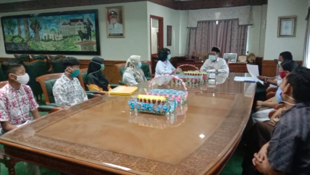 Pjs Bupati Kutim Moh Jauhar Efendi saat melepas keberangkatan pelajar Kutim yang akan ikuti GSI diruang kerjanya. (Foto: Wak Hedir Pro Kutim)