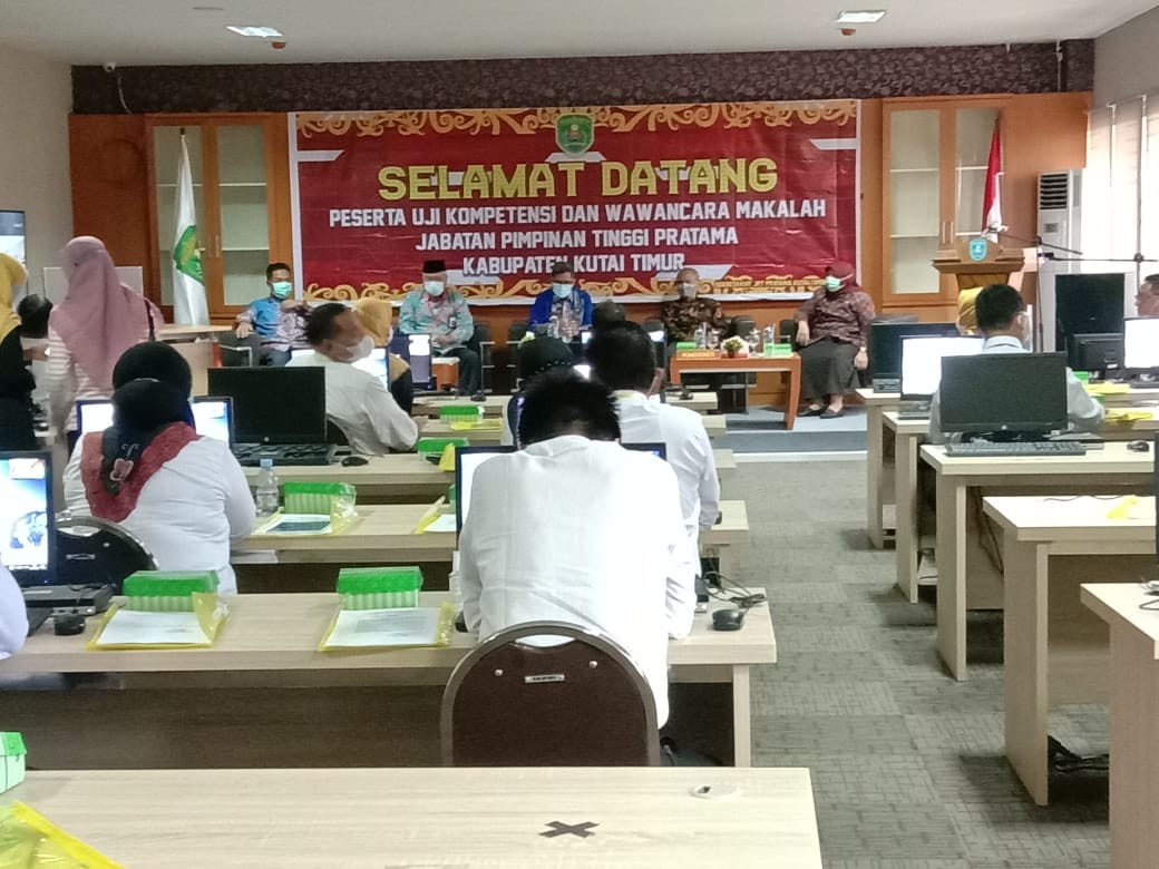 SANGATTA – Sempat tertunda karena pandemi COVID-19, tahapan seleksi Jabatan Pimpinan Tinggi (JPTP) tahun 2020, dilingkungan Pemerintah Kabupaten Kutai Timur (Pemkab Kutim) akhirnya berlanjut. Kamis (26/11/2020) sebanyak 23 pejabat esselon III mengikuti uji kempetensi (tes tertulis) JPTP di Gedung Badan Kepegawaian, Pendidikan dan Pelatihan (BKPP) Kutim, yang dibuka Pjs Bupati Moh Jauhar Efendi.
