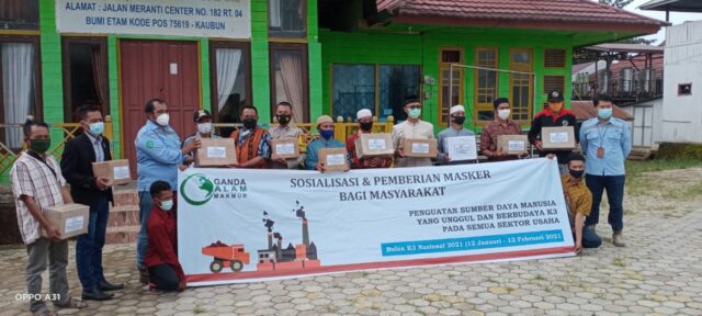 SANGATTA – Mendukung upaya pemerintah dalam menanggulangi pandemi COVID-19 diwilayah kecamatan Kaubun, Kutai Timur (Kutim). PT Ganda Alam Makmur (GAM) membagikan masker, hand sanitizer dan wastafel (Tempat Cuci Tangan) portable untuk Rumah Ibadah di wilayah Kaubun. Upaya itu dilakukan sekaligus memperingati Bulan K3 tahun 2021, bekerja sama dengan Forum Kerukunan Umat Beragama (FKUB) Kaubun, Polsek dan Camat Kaubun.
