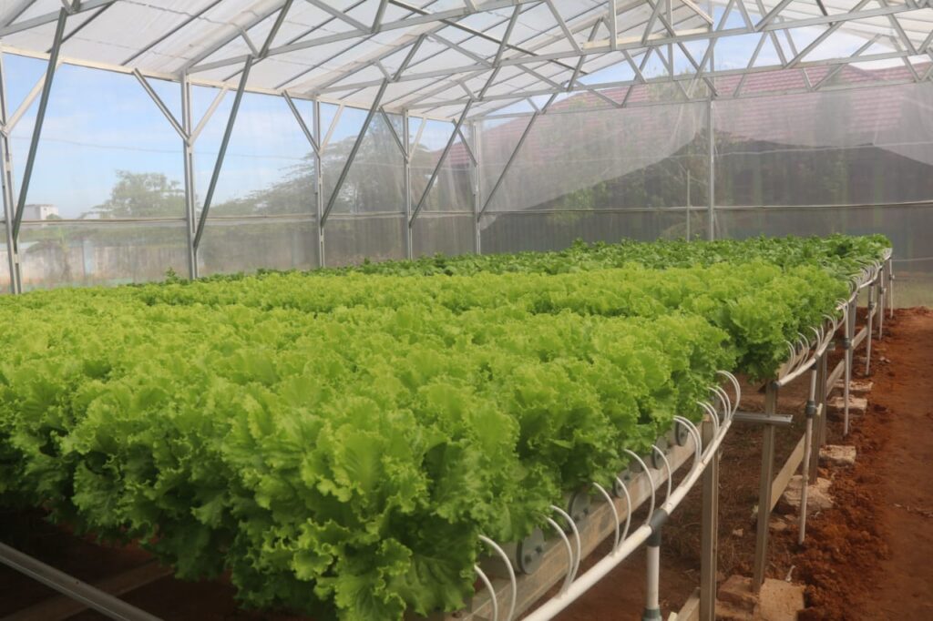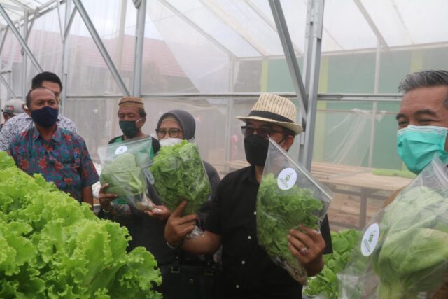 Bupati Penen Perdana Selada dan Pakcoy di Green House Hidroponik Milik SLB Negeri Kutim. (Foto: Wahyu Yuli Artanto Pro Kutim)