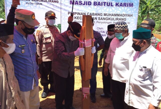 SANGKULIRANG – Minggu (21/3/2021) siang, Bupati melakukan pemancangan pertama pembangunan Masjid Baitul Karim, Jalan Projasam KM 8, Penyolongan, Benua Baru Ilir, Sangkulirang. Pembangunan Masjid Baitul Karim di lahan 2 hektare diprakarsai oleh Pimpinan Cabang Muhammadiyah Sangkulirang, yang juga dirangkai dengan penanaman bibit pohon kurma di areal pembangunan masjid Baitul Karim.