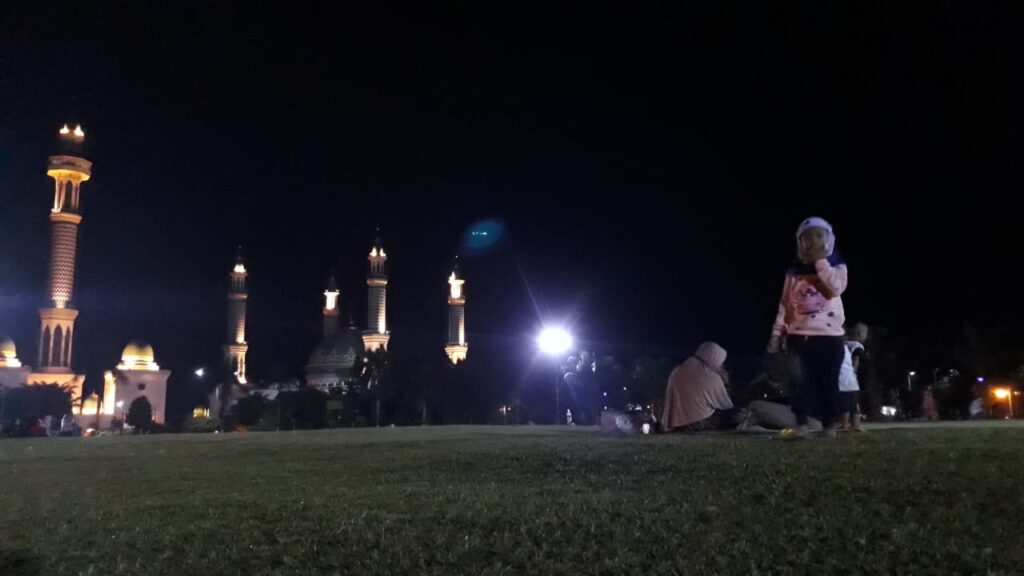 Jangan khawatir jika ingin menikmati Bukit Pelangi berlama-lama, khususnya saat sholat lima waktu tiba. Sebab, wisata tanpa biaya alias tak perlu beli tiket ini menyediakan pula tempat sholat lima waktu yang luar biasa. Komplek Islamic Center namanya. Berdiri kokoh Masjid Agung Al Faruq dengan kapasitas lebih dari 10 ribu jamaah. Apabila sedang berada disekitar tiga gedung utama Pemkab Kutim, maka kita tinggal berjalan kaki saja untuk sampai ke masjid, yang jika malam tiba akan bertabur cahaya. Untuk diketahui, Masjid Agung kerap menjadi lokasi syiar Islam. Mulai dari pendidikan Islam usia dini, penyelenggaraan MTQ, melepas dan menyambut jamaah haji, hingga kegiatan lain bernuansa Islami lainnya.