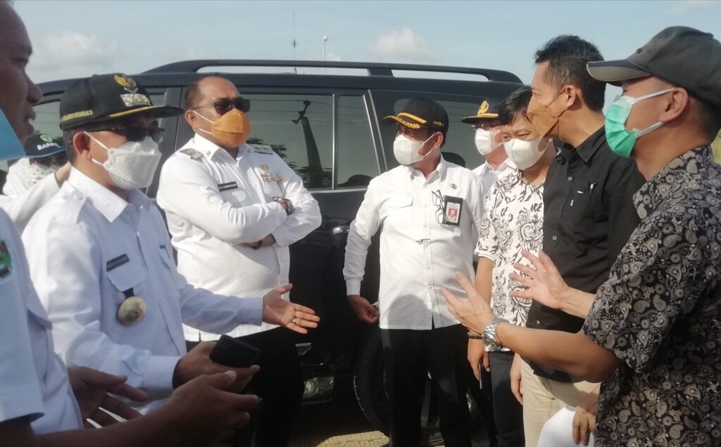 KALIORANG – Rabu (2/6/2021), Bupati Kutai Timur (Kutim) Ardiansyah Sulaiman didampingi Wabup Kasmidi Bulang bersama jajaran pejabat lingkup Pemkab Kutim melakukan kunjungan kerja ke Kawasan Ekonomi Khusus Maloy Batuta Trans Kalimantan (KEK MBTK). Kunjungan tersebut bertujuan meninjau langsung lokasi lahan hibah untuk pembangunan pos wilayah kerja KUPP (Kantor Unit Penyelenggara Pelabuhan) kelas III Sangkulirang. Sekaligus pula meninjau titik rencana pembangunan bulking station CPO oleh PT Palma Serasih Internasional (PSI) di KEK MBTK.