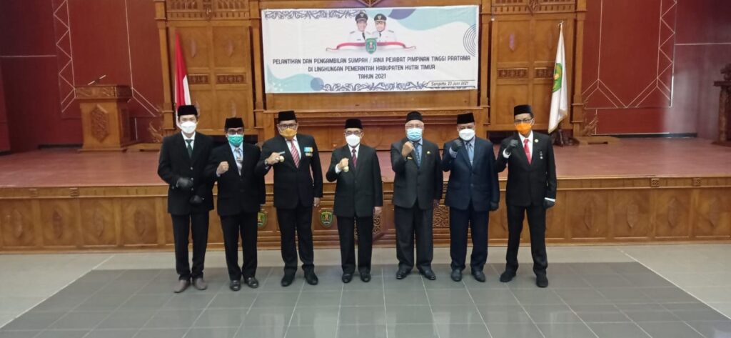 Dalam pengambilan sumpah atau janji PTP tersebut, Ardiansyah didampingi Wakil Bupati Kasmidi Bulang, Seskab Irawansyah, Ketua DPRD Kutim Joni dan jajaran FKPD Kutim mulai dari Kapolres, Danlanal, Kajari Kutim dan Dandim 0909/SGT. Untuk diketahui dari 4 pimpinan OPD ini, ada 3 orang yang mengikuti assesment pada seleksi terbuka jabatan PTP Pemkab Kutim tahun 2020 lalu.