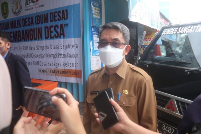 SANGATTA – Badan Usaha Milik Desa (BUMDes) didirikan tujuan adalah bisa memberikan kontribusi bagi Desa. Hal tersebut ditegaskan Bupati Kutai Timur (Kutim) H Ardiansyah Sulaiman saat acara serah terima mobil dari CSR PT Kaltim Prima Coal (KPC) kepada BUMDes Sangatta Utara, Senin (13/9/2021) di Jl Abdul Muis Desa Sangatta Utara.