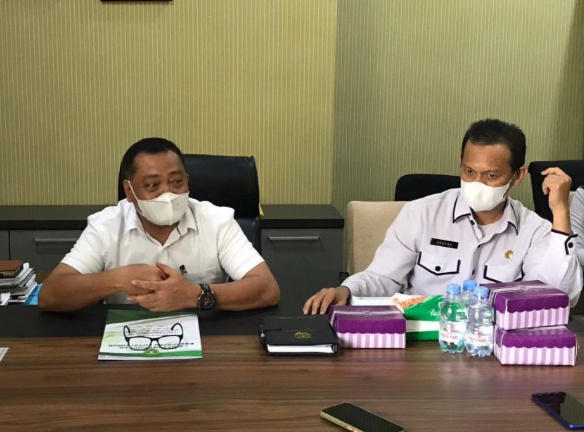 Kepala Disdik Kutim Syarir didampingi Kepala UPT Disdik Sangatta Utara Arafah saat konferensi pers di Dinas Pendidikan Kutim (Ist)