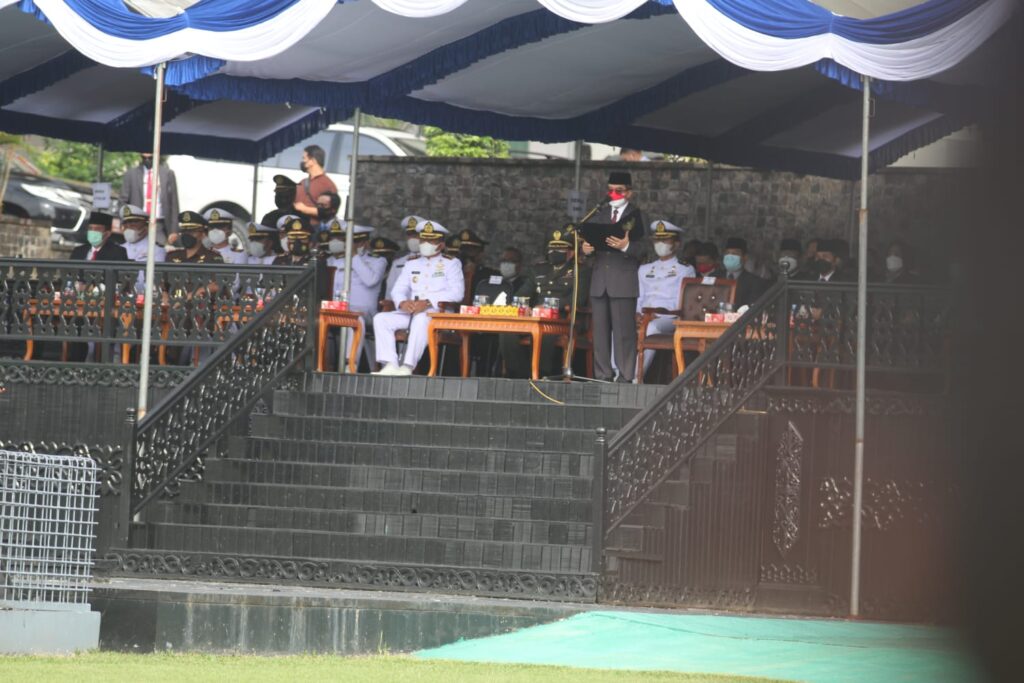 SANGATTA – Hari Kesaktian Pancasila di Kutim tahun ini di Kabupaten Kutai Timur (Kutim) diperingati dengan melaksanakan upacara di Halaman Kantor Bupati Kutim, Jumat (1/10/2021).
