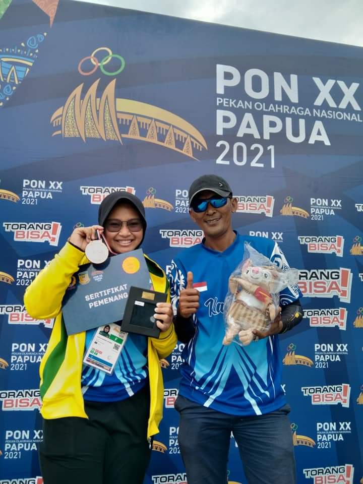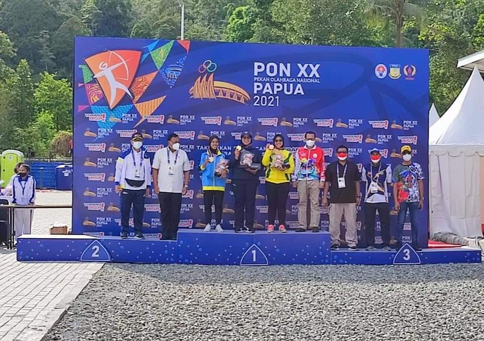 Momen penyerahan medali perunggu yang diraih Kayla Adinda Utomo di cabor panahan PON XX Papua 2021. Foto: ist
