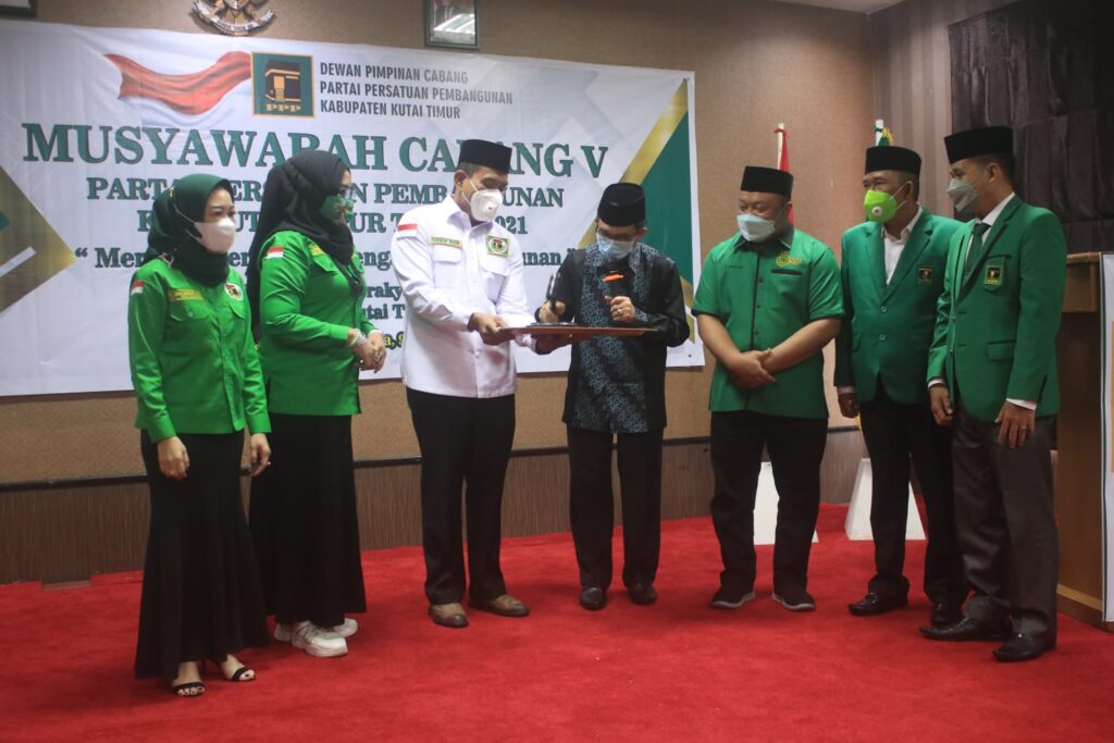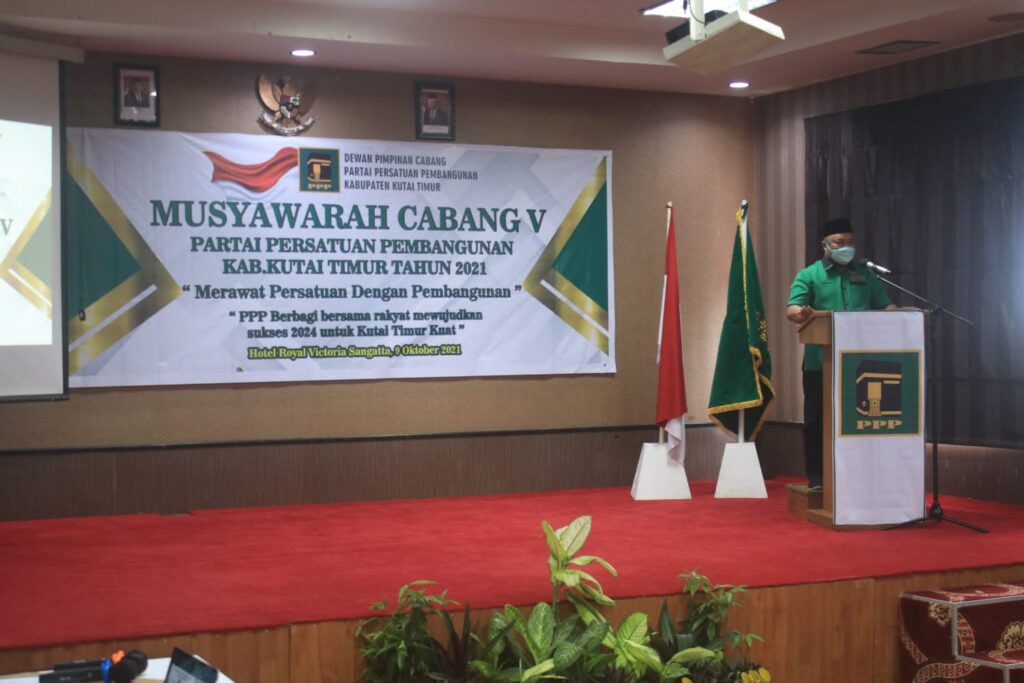 SANGATTA – Dewan Pimpinan Cabang (DPC) Partai Persatuan Pembangunan (PPP) Kabupaten Kutai Timur (Kutim), akhirnya menggelar Musyawarah Cabang (Muscab V). Muscab berlangsung di Hotel Royal Victoria, Sangatta, (9/10/2021). Dibuka Bupati Kutim H Ardiansyah Sulaiman dan dihadiri pengurus PPP serta undangan lainnya. Seperti perwakilan partai lain, organisasi sayap partai serta undangan lainnya.