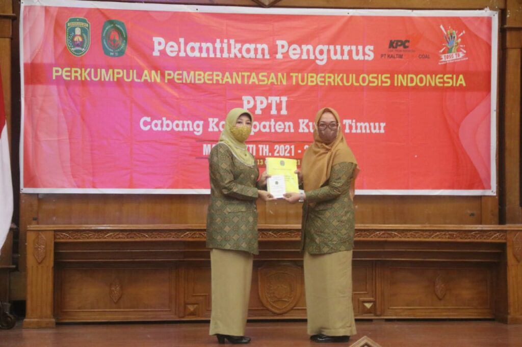 SANGATTA – Sebanyak 34 Pengurus Perkumpulan Pemberantasan Tuberkulosis Indonesia (PPTI) Kabupaten Kutai Timur (Kutim) masa bakti 2021-2026 dilantik, Rabu (13/10/2021) pagi. Seluruh pengurus dilantik Ketua PPTI Provinsi Kalimantan Timur (Kaltim) Ny Hj Noorbaiti Isran di Ruang Meranti, Kantor Bupati Kutim. Pelantikan turut disaksikan Bupati Kutim H Ardiansyah Sulaiman dan Ketua TP PKK Kutim Ny Hj Siti Robiah Ardiansyah.