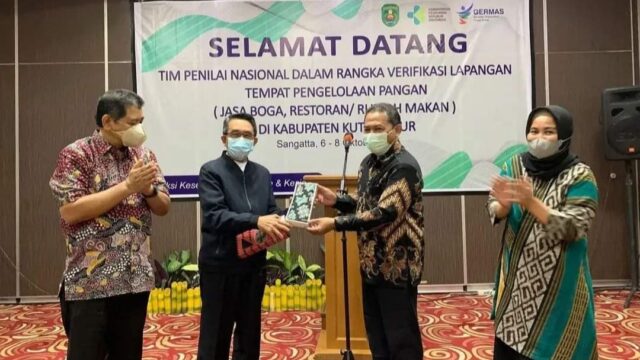 SANGATTA – Lomba Tempat Pengelolaan Pangan (TPP) yang diadakan oleh Kementerian Kesehatan RI guna memperingati Hari Kesehatan Nasional ke 57 di Hotel Royal Victoria, resmi berakhir, Jumat (8/10/2021). Lomba TPP yang berkorelasi erat pada pengelolaan kesehatan ini ditutup Bupati Kutim H Ardiansyah Sulaiman. Sebelum menutup, Ardiansyah mengucapkan selamat kepada Hotel Victoria dan PT Amira yang bisa mewakili Provinsi Kaltim pada lomba ini. Alasannya apalagi kalau bukan ditengah pandemi COVID-19 seperti ini, ternyata masih ada unit usaha yang konsisten. Tetap mematuhi anjuran pemerintah terkait penerapan Protokol Kesehatan. Dia berharap standar pengelolaan makanan yang diterapkan bisa menjadi contoh bagi para pengusaha kuliner di Kutim.
