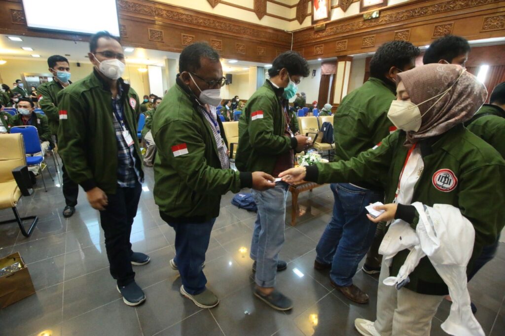 Ketua IDI Kutim 2017-2020 dr Agung Wiratmoko bersalam komando dengan Ketua IDI Kutim 2021-2024 yang baru dr Didit Tri Setyo Budi di Muscab IDI Kutim VI. Foto: Irfan/Pro Kutim