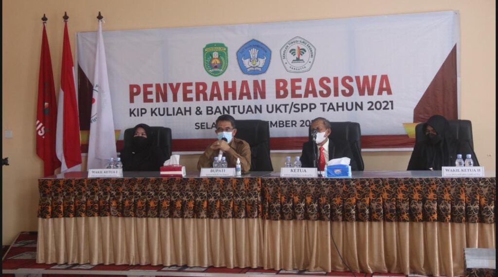 SANGATTA – Pemberian beasiswa kepada mahasiswa, sebagai pembebasan biaya kuliah serta biaya hidup bulanan, hendaknya bisa dimanfaatkan dengan sebaik mungkin. Hal itu disampaikan Bupati Kutai Timur (Kutim) Ardiansyah Sulaiman sebelum penyerahan Kartu Indonesia Pintar (KIP) dan Uang Kuliah Tinggal (UKT) kepada mahasiswa Sekolah Tinggi Ilmu Ekonomi (STIE) Nusantara Sangatta, di Jalan Margosantoso, Selasa, (14/12/2021).