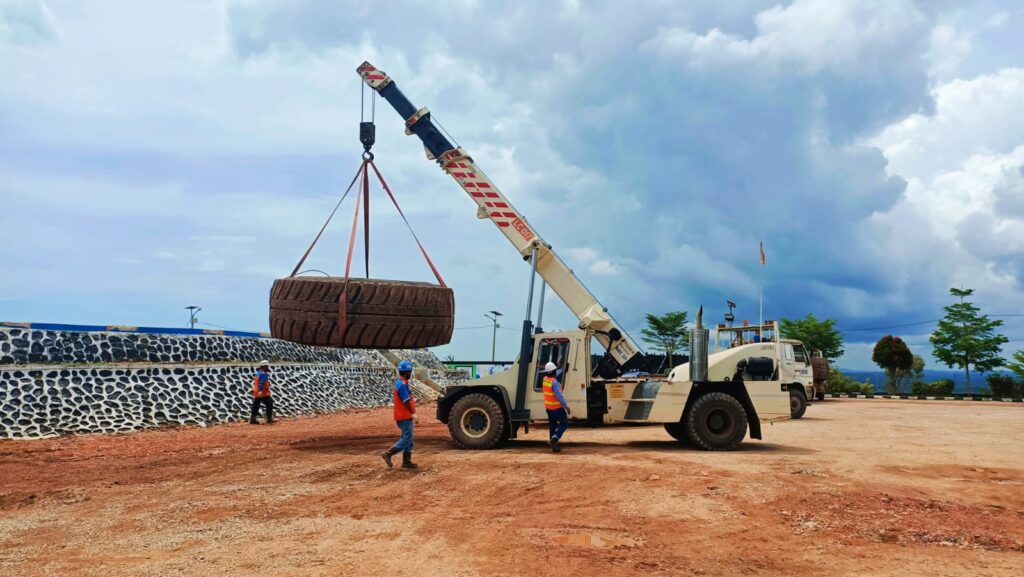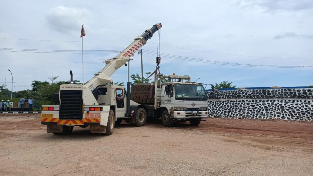 Material T282B sudah mulai didrop di kawasan monumen ikon tambang di Bukit Pandang. Foto: Ahyar/Dokpim