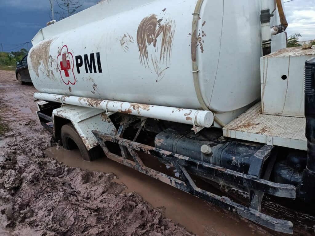 Dibeberapa titik, bahkan armada pengangkut air PMI Kutim mesti menghadapi kendala yang berat. Contohnya melalui jalan rusak dan kubangan berlumpur di wilayah Muara Gabus, kelurahan Singa Geweh Kecamatan Sangatta Selatan. Truk tangki berisi air bersih sempat amblas terperosok kedalam kubangan lumpur. Semua itu dilakukan demi membantu warga terdampak banjir.