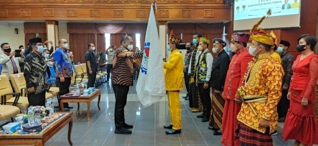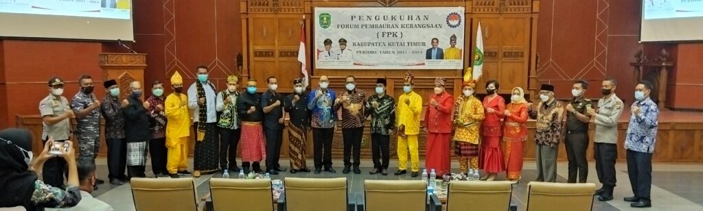 SANGATTA – Ketua Forum Pembauran Kebangsaan (FPK) Kutim Edy Heriadi dan jajaranya masa bakti 2021-2024 dikukuhkan Wakil Bupati Kasmidi Bulang, Kamis (31/3/2022) pagi. Pengukuhan itu berlangsung diruang Meranti, Kantor Bupati Kutim.