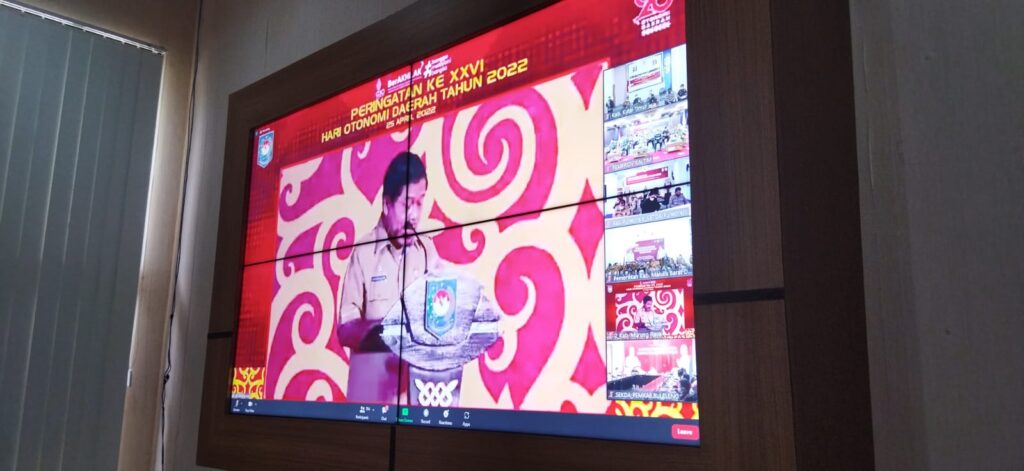 SANGATTA- Puncak peringatan ke XXVI (26) Hari Otonomi Daerah (Otda) 2022 digelar secara hybrid. Bupati Kutai Timur (Kutim) Ardiansyah Sulaiman turut mengikuti secara virtual di Kantor Diskominfo-Perstik, Senin (25/4/2022) pagi. Bersama seluruh kepala daerah dan Forkompimda se Indonesia.