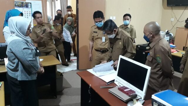 Bupati Kutim H Ardiansyah Sulaiman, Wabup H Kasmidi Bulang, Pj Seskab Yuriansyah bersama pejabat lainnya saat sidak pegawai lingkup Pemkab. (Fuji dan Nopiansyah Pro Kutim)