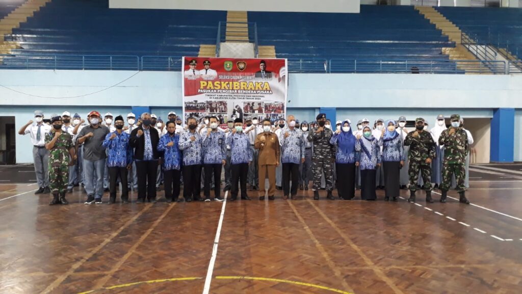 SANGATTA- Pemerintah Kabupaten Kutai Timur (Pemkab Kutim) mulai melakukan seleksi putra putri terbaiknya untuk menjadi pasukan pengibar bendera pusaka (Paskibraka) di hari Kemerdekaan Republik Indonesia (RI) pada 17 Agustus 2022 nanti. Seleksi ini istimewa karena dibuka langsung ole Bupati Kutim H Ardiansyah Sulaiman di GOR Kudungga, Jalan Soekarno-Hatta, Sangatta Utara, Selasa (17/5/2022). Pembukaan seleksi turut dihadiri sejumlah pejabat. Mulai dari Kadispora Kutim Basrie hingga pejabat struktural dan fungsional lingkup Dispora.