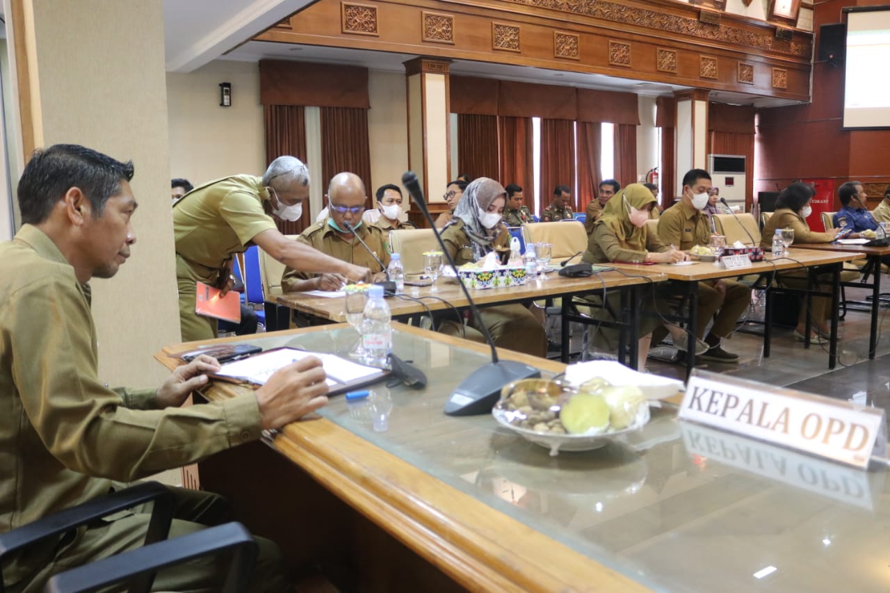 Suasana Rapat Kerja yang dipimpin Wabup Kasmidi Bulang. (Hasyim Dokpim)