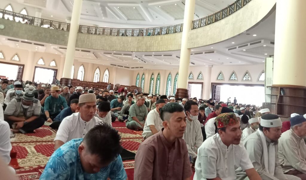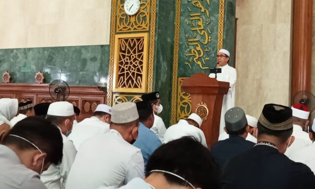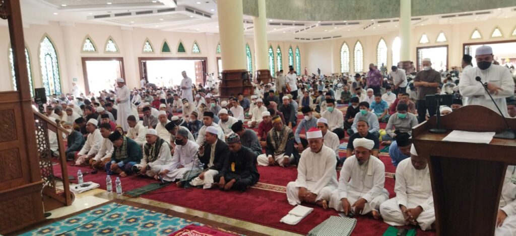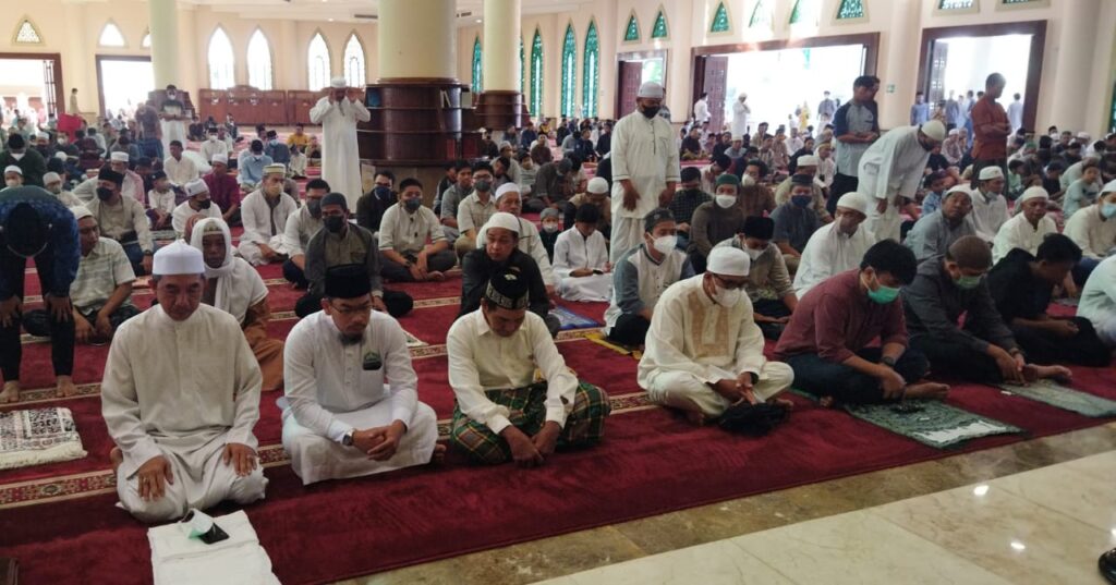 SANGATTA – Tak seketat tahun-tahun sebelumnya, kali ini masyarakat bisa menjalankan salat Id dengan lebih khitmat dengan saf lebih rapat. Tentunya diimbau tetap mengenakan masker karena pandemi COVID-19 belum berlalu. Minggu (10/7/2022) pagi tadi, Bupati Kutai Timur (Kutim) H Ardiansyah Sulaiman melaksanakan salat Iduladha 1443 Hijriyah di Masjid Agung Al-Faruq, Komplek Islamic Center di Bukit Pelangi, Sangatta.