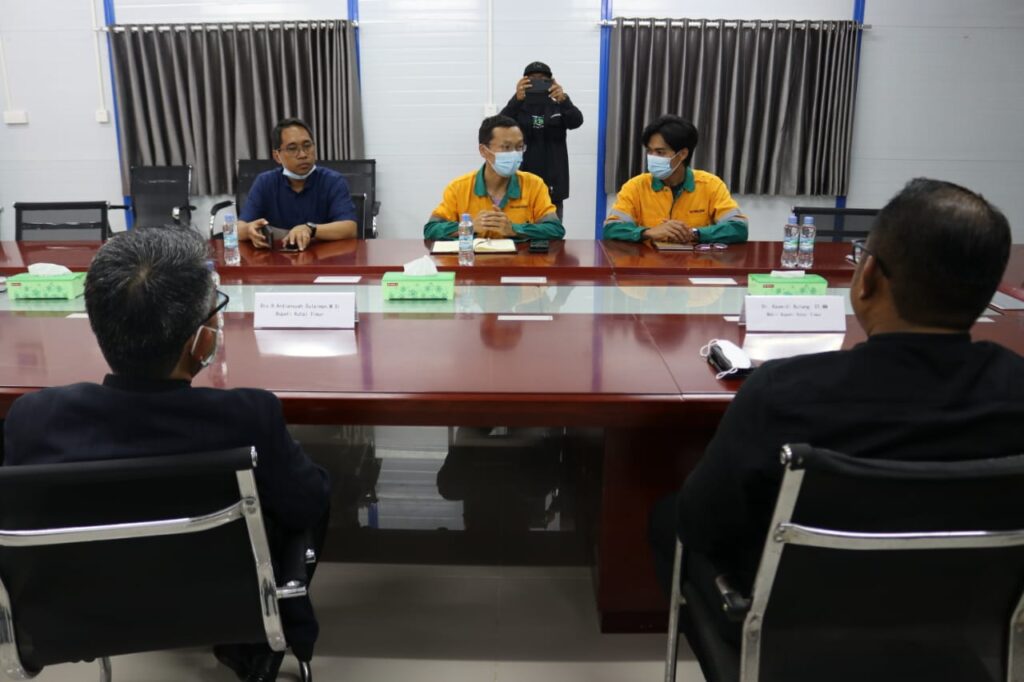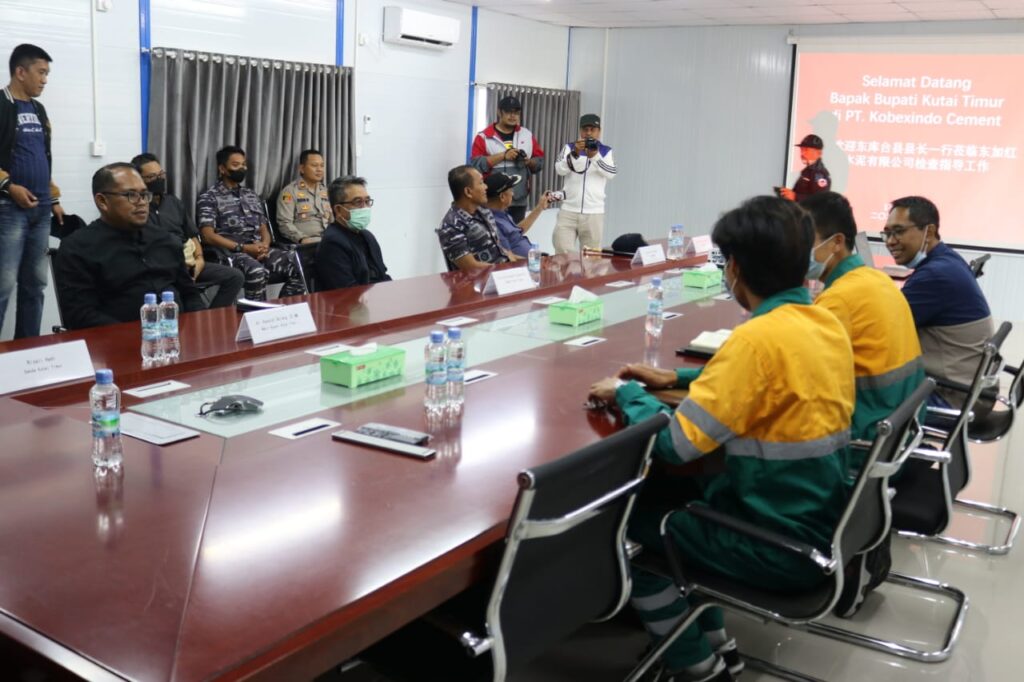 BENGALON- Sebelum mengikuti kegiatan Pelas Laut Adat Kutai di Sekerat, Bupati Kutim H Ardiansyah Sulaiman didampingi Wabup H Kasmidi Bulang melakukan peninjauan aktivitas operasional PT Kobexindo Cement, Minggu (17/7/2022). Di kantor manajemen perusahaan, rombongan kunjungan kerja Bupati Kutim disambut General Manajer PT Kobexindo Cement Mr Lai Weipeng, Asisten GM Mr Xie Yerong serta Vice President External Relations and Public Affair Badrun.