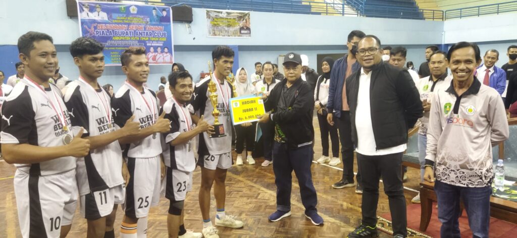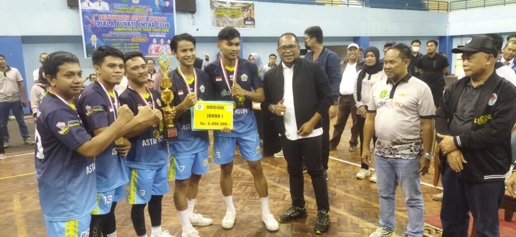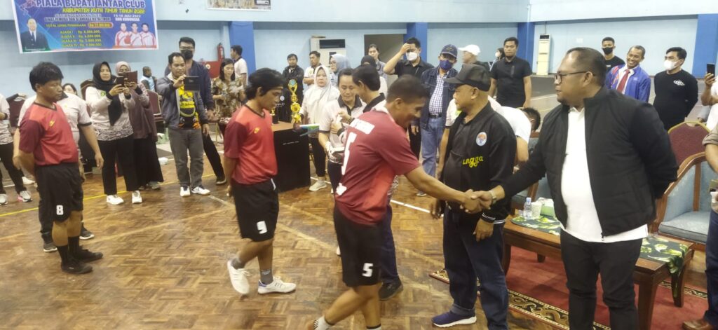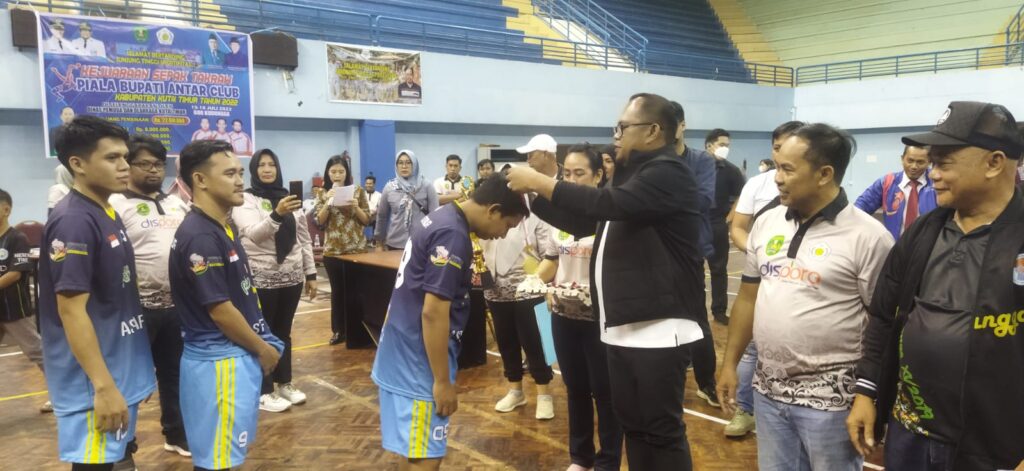 SANGATTA – Kejuaraan Sepak Takraw Piala Bupati antar klub Kutai Timur (Kutim) yang berlangsung selama 3 hari mulai 15-18 Juli 2022 berlangsung sukses. Ditutup oleh Wakil Bupati (Wabup) Kutim Kasmidi Bulang di Gor Kudungga Sangatta, Jalan Soekarno Hatta, Minggu (17/7/2022) malam.