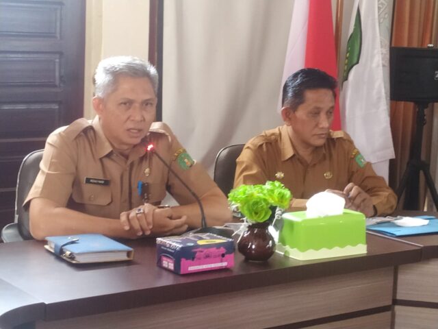 Pimpin : Seskab Rizali Hadi didampingi Kepala Bakesbangpol Kutim Basuni memimpin rakor persiapan pemilu. (Foto Ronall J Warsa Pro Kutim)